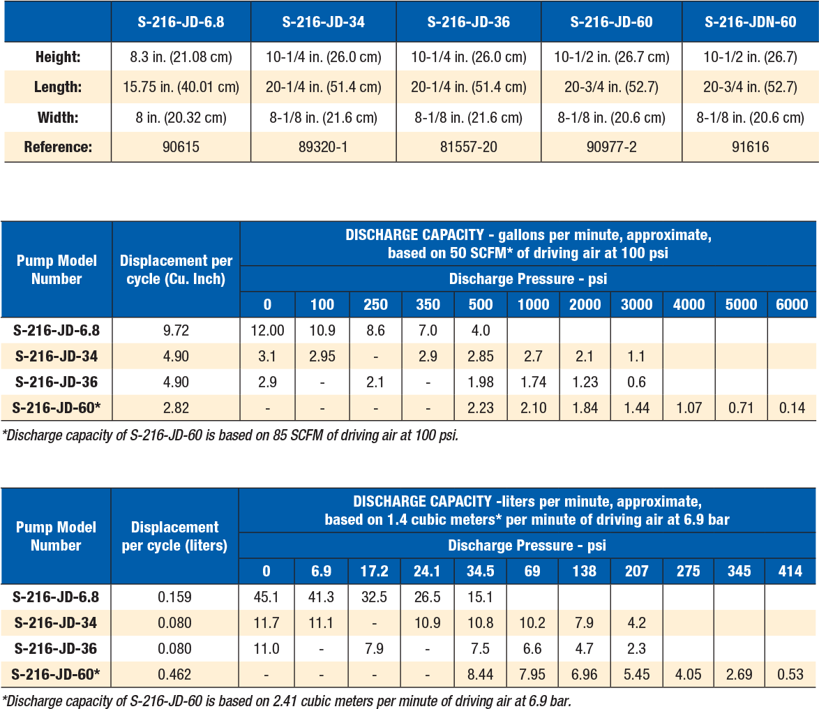 Services oil and non-corrosive liquids. Not for water service. Its general design is identical to the S-216-JD-34 pump described above. The -36 pump has an aluminum body which significantly lowers the price of the pump and reduces its weight by four pounds. The pump has nitrile seals.