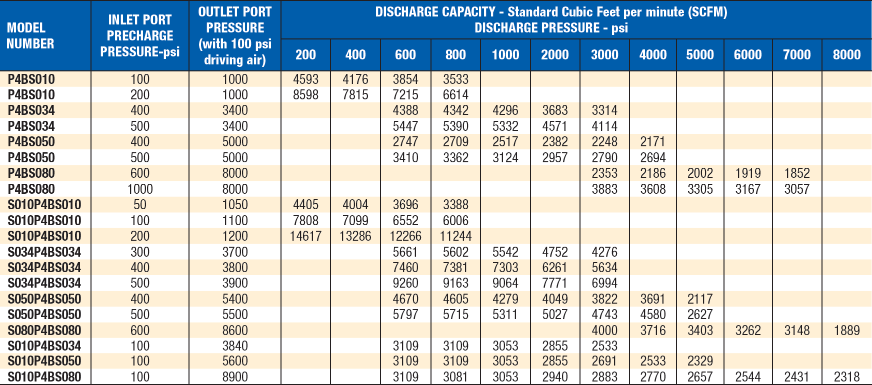 Table 2 Approximate performance based on a maximum air consumption of 50 SCFM