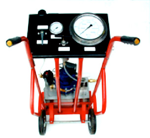 Trolley mounted test unit for Hydrostatic Testing to 10,000psi, pump tank mounted with stroke counter, microswitch, tank top-up via integral ball float mechanism.