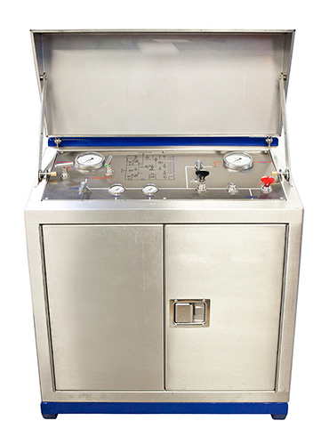 In general the ESD unit contains Hi-Lo Pilot Sensing Valves, an air operated hydraulic pump, pre-set pressure control valves, pressure gauges, multiple outlet ports and hydraulic tank, all housed in a robust skid mounted stainless steel cabinet.