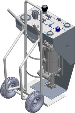 Erie, PA - June 7, 2021 - High Pressure Equipment Company (HiP), a subsidiary of Graco Inc., introduces an air driven gas booster system mounted in a hand cart to allow for easy portability. HiP's new portable gas booster system features a double acting, double head gas booster with max. output of 15,000 psi mounted within a square tubular frame hand cart and supplied complete with air filter, air pressure regulator with pressure gauge and air shut off valve.