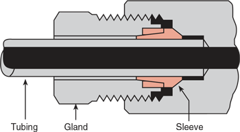 Easy make-up connections. One of the popular benefits of taper seal connections is that it is very easy to determine when the connection is "tight enough" during initial assembly. Simply rotate the tubing gland into the connection until you feel a "bottoming out" or "dead stop" of the wrench. This signals that the connection has been properly made.