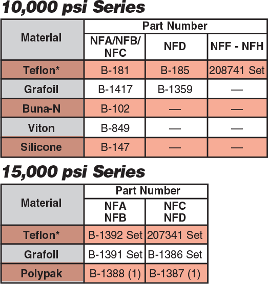 Packing material in all special material valves is Teflon unless otherwise specified.